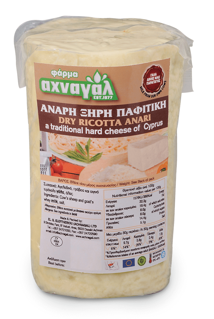 Anari Cheese is a soft white cheese produced from cow, sheep and goat milk. It is very rich in protein and has low fat. It is produced from the whey remaining during the Halloumi production process.