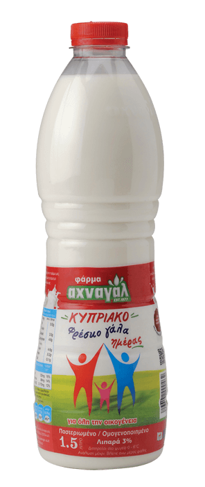 Achnagal, Fresh daily Milk, 3% fat, available in 1lt, 1,5lt, 2lt plastic bottles. Nutritious and delicious fresh milk that encompasses all the necessary trace elements, minerals and vitamins.